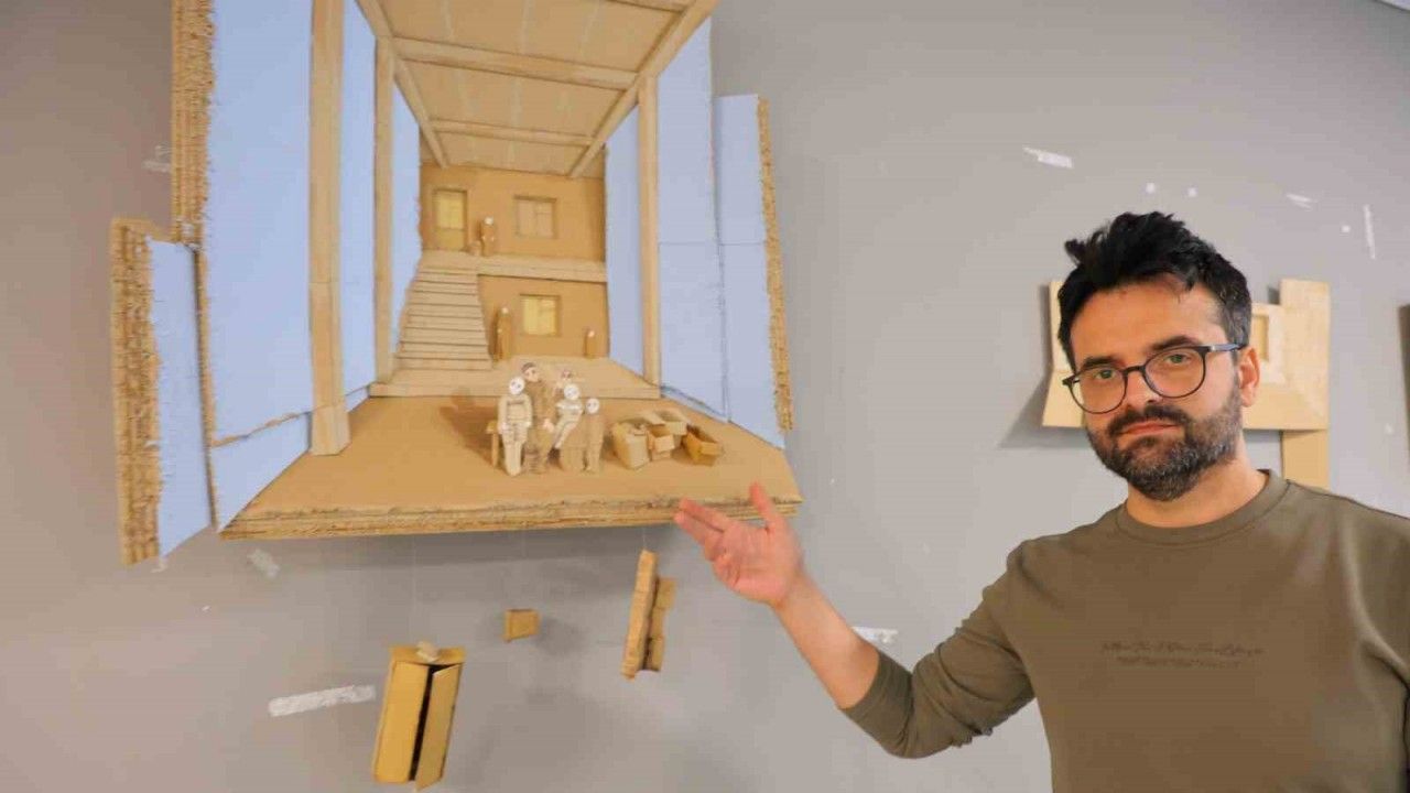 Kahramanmaraş’ta atık koli kutularından oluşturulan Filistin’in sessiz duvarları isimli sergi açıldı.