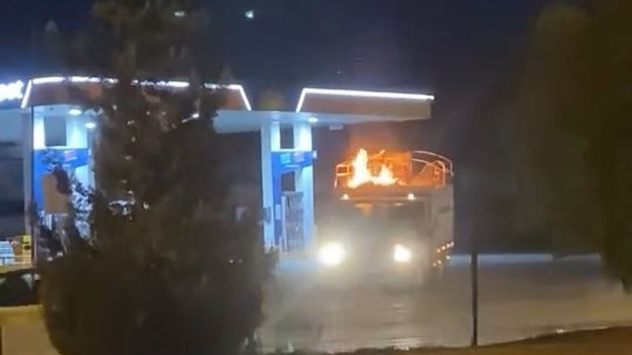 Elazığ’da bir pikabın kasasındaki kartonlar bir anda alev aldı. Kamyonet, alevler içerisinde akaryakıt istasyonuna girerken, personeller tarafından söndürüldü.