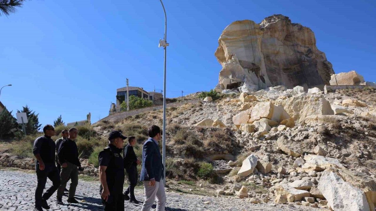 "20 Eylül 2025 günü Ürgüp ilçemizin Kadıkalesi mevkiinde yaptığımız incelemelerde ciddi bir risk tespit ettik. Hiç vakit kaybetmeden gerekli talimatları vererek bölgedeki evlerin acilen boşaltılmasını sağladık. Bugün gece saat 01.58’de ana kayadan kopan parçalar ciddi bir yıkıma yol açtı. Ama çok şükür ki, aldığımız hızlı tedbirler sayesinde tek bir vatandaşımızın burnu bile kanamadı. Eğer o evler boşaltılmamış olsaydı, bugün büyük bir felaketle karşı karşıya kalabilirdik. Bu olay bize bir kez daha gösterdi ki, doğal afetlere karşı tedbir almak, riskleri önceden görmek ve hızlı hareket etmek hayat kurtarıyor. Olayın gerçekleştiği anda AFAD, Emniyet ve İtfaiye ekiplerimiz bölgeye sevk edilerek güvenlik sağlandı. Ayrıca riskin devam etmesi nedeniyle ana kayanın hemen yakınında bulunan evlerde yaşayan vatandaşlarımızı ve bir oteldeki misafirlerimizi de güvenli bir şekilde başka otellere yerleştirdik. AFAD İl Müdürlüğü’müz ve Kapadokya Alan Başkanlığı tarafından hazırlanacak rapor doğrultusunda bundan sonraki süreçteki riskleri değerlendirip tedbirlerimizi ona göre alacağız."