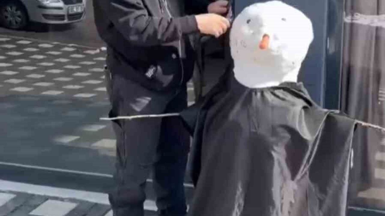 Kar yağışıyla birlikte fazla tıraşa gelmeyen olunca, berber ise çareyi kardan adamı tıraş etmekte buldu. Dükkanının önüne yaptığı kardan adama önlük giydiren esnaf, hem saç hem sakal tıraşı yapmayı ihmal etmedi. Farklı farklı kar yağışına sevinen vatandaşların yaşadığı komik anlar, kameralara ise saniye saniye yansıdı.