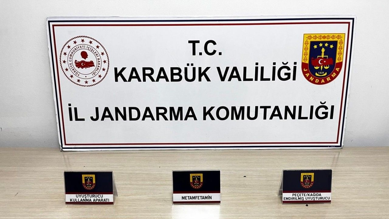 Edinilen bilgiye göre, Karabük İl Jandarma Komutanlığı ekipleri tarafından il merkezinde bir şahsın üzerinde ve eşyalarında yapılan aramada 2 gram metamfetamin, farklı ebatlarda uyuşturucu madde emdirilmiş peçeteler ve 1 adet uyuşturucu kullanma aparatı ele geçirildi. Gözaltına alınan şüpheli, işlemlerin tamamlanmasının ardından adli makamlara sevk edildi.