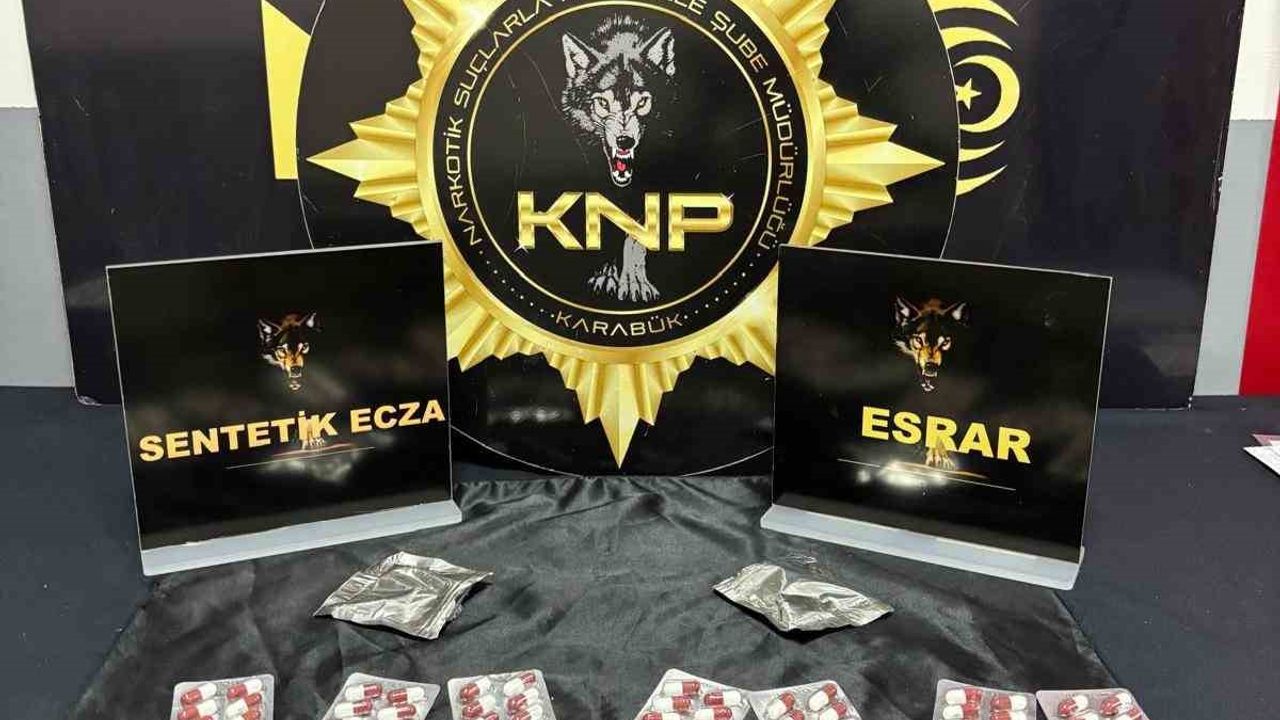 Karabük Cumhuriyet Başsavcılığı koordinesinde İl Emniyet Müdürlüğü İstihbarat ve Narkotik Suçlarla Mücadele Şube Müdürlüğü ekipleri, uyuşturucu veya uyarıcı madde temin ve ticaretinin önlenmesine yönelik yürütülen istihbarat ve saha çalışmaları kapsamında operasyon düzenledi. İl merkezinde gerçekleştirilen operasyonda, durumlarından şüphelenilen F.B. ve B.B. isimli şahıslar takibe alındı. Şahısların üzerlerinde ve araçlarında yapılan aramalarda iki parça halinde 6,96 gram marihuana maddesi ve 98 adet sentetik ecza ele geçirildi.