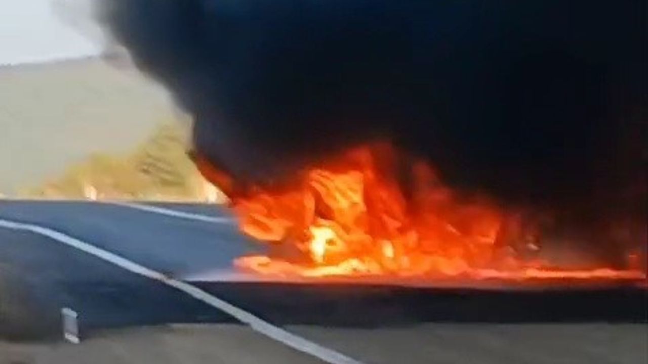 Karabük’ün Eflani ilçesinde 3 kişinin hayatını kaybettiği kazada kafaya kafaya çarpışan iki otomobilin alev aldığı anlar cep telefonuna yansıdı.