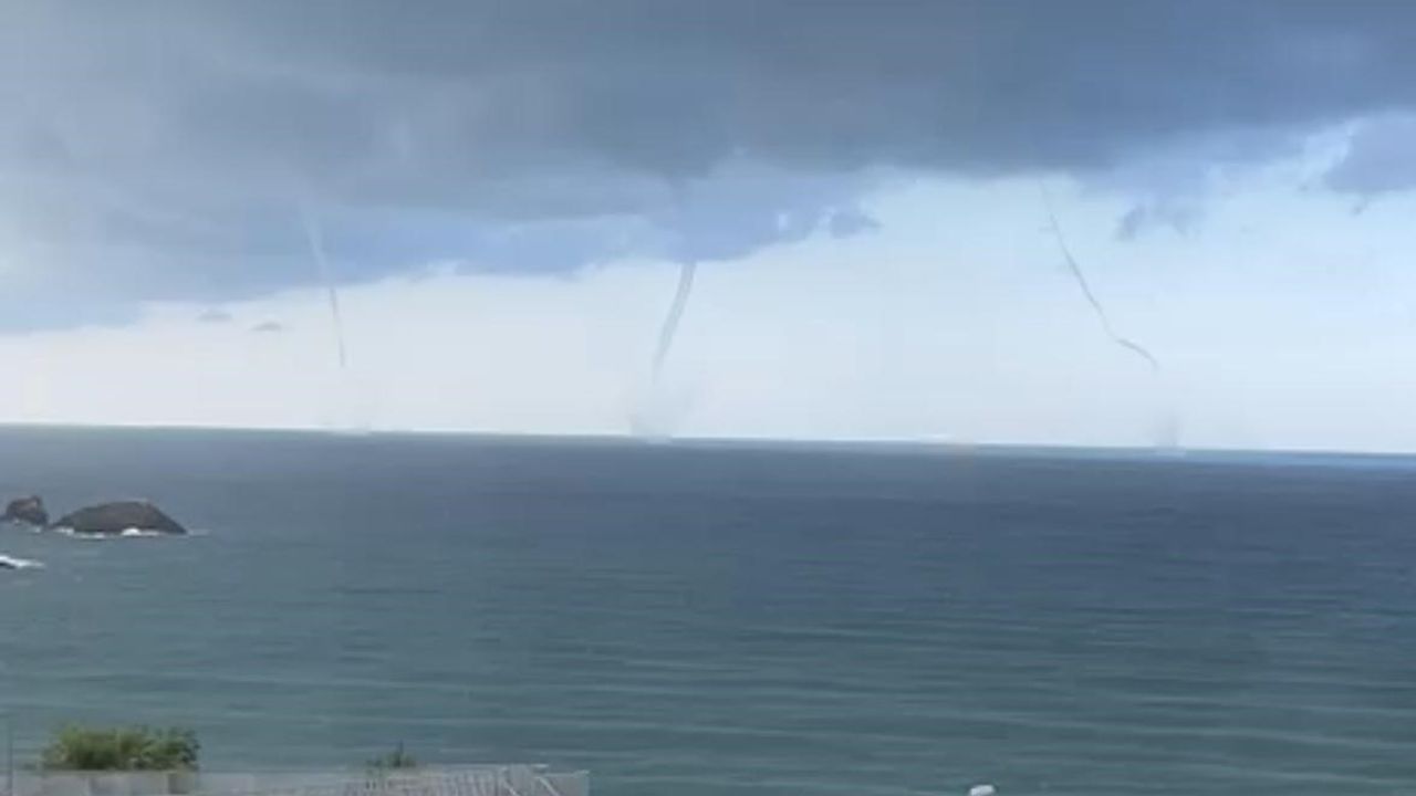 Vatandaşlar tarafından cep telefonu kamerasıyla kayıt altına alınan hortumlar, karaya yaklaşmadan yok olurken hortumu kaydeden vatandaşlar bir anlık korku yaşadılar.