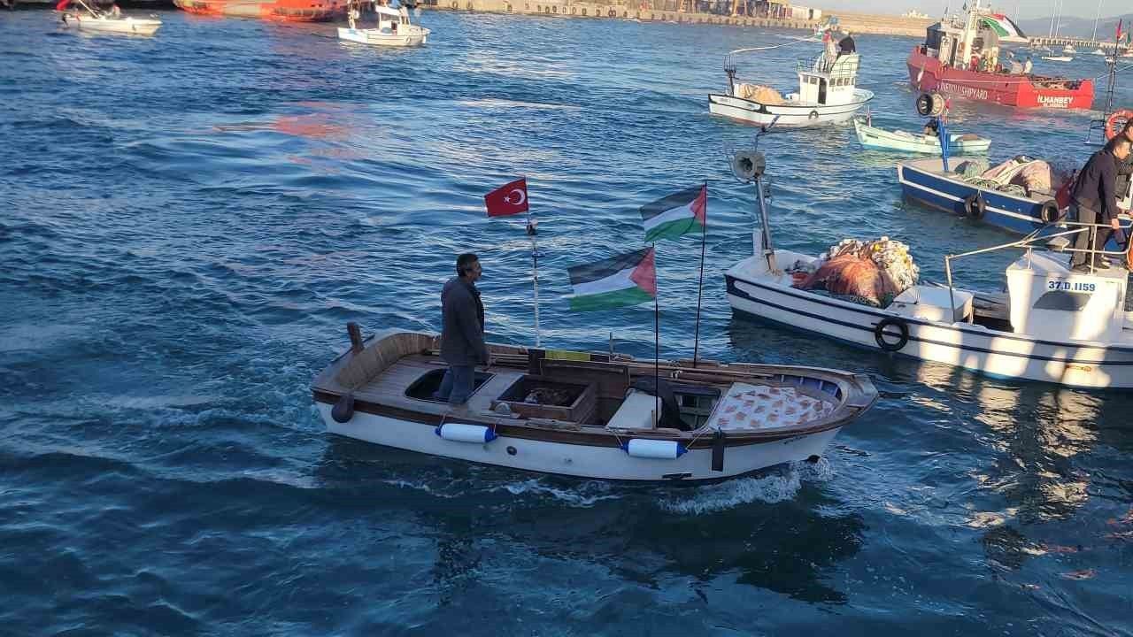 Kastamonu’nun İnebolu ilçesinde balıkçılar, Türk ve Filistin bayraklarıyla donatılan teknelerle Karadeniz’e açılarak Gazze’ye insani yardım götüren Sumud Filosu’na destek verdi, İsrail’i protesto etti.