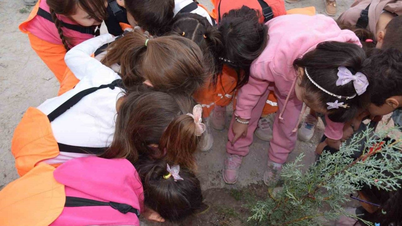 Konya’nın Karapınar ilçesinde öğrenci ve veliler, "Yeşil Gelecek İçin Minik Eller İş Başında" sloganıyla fidan dikti.