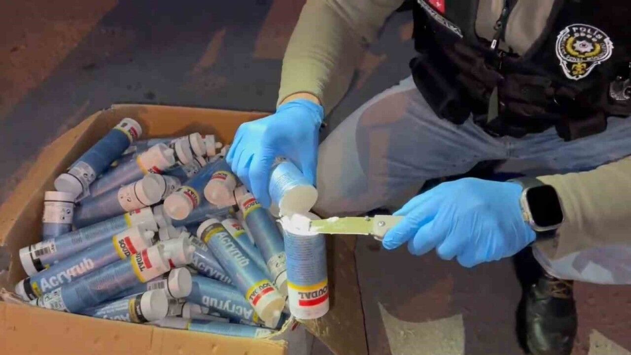 Kamyon içerisinde polis ekiplerince narkotik köpeği "Adam" ile arama yapıldı. Hassas burunlu narkotik köpeğinin tepki vermesi üzerine koliler incelendi. Plastik silikon tüplerine gizlenmiş 52,5 kilogram metamfetamin ele geçirildi. Uyuşturucu maddenin piyasa değerinin yaklaşık 75 milyon lira olduğu öğrenildi. Olayla ilgili adli işlem başlatıldı.
