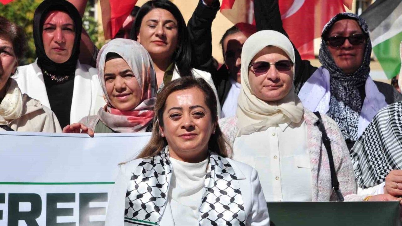 Sara, "Barışçıl bir şekilde yola çıkan ve uluslararası sularda haydut İsrail’in hukuksuz müdahalesine uğrayan Küresel Sumud Filosu’nu dünya öylece seyretti. Hamdolsun, Türkiye, Cumhurbaşkanımız Sayın Recep Tayyip Erdoğan’ın kararlılığıyla bu adaletsizlik karşısında da sessiz kalmadı. Sadece kendi ülkesinin vatandaşlarını değil, 13 ülkeden 101 vicdan sahibi gönüllünün de ülkelerine güvenle dönmelerini sağladı. Bizler de ablukayı delmek ve insanlık onurunu korumak için mücadele eden kahramanların ülkemize dönüşlerinde oradaydık. Hepsinin dilinde aynı temenni vardı. "Biz elimizden geleni yaptık, umarım Gazze’ye bir umut ışığı olabilmişizdir." İşte bugün o umut sözleri de bu meydanda yankılanıyor. Bugün Türkiye’den tüm dünyaya tek bir şey söylüyoruz: Barış kadınla mümkündür. Slogan atmıyoruz; vicdanlarımızla haykırıyoruz. Çünkü bazı sessizlikler vardır ki, arşı yere indirir ve bizim sessizliğimiz, Gazze’nin en gür çığlığı olacaktır. Şimdi, sizleri de sessiz çığlık zincirimize davet ediyorum" diye konuştu.