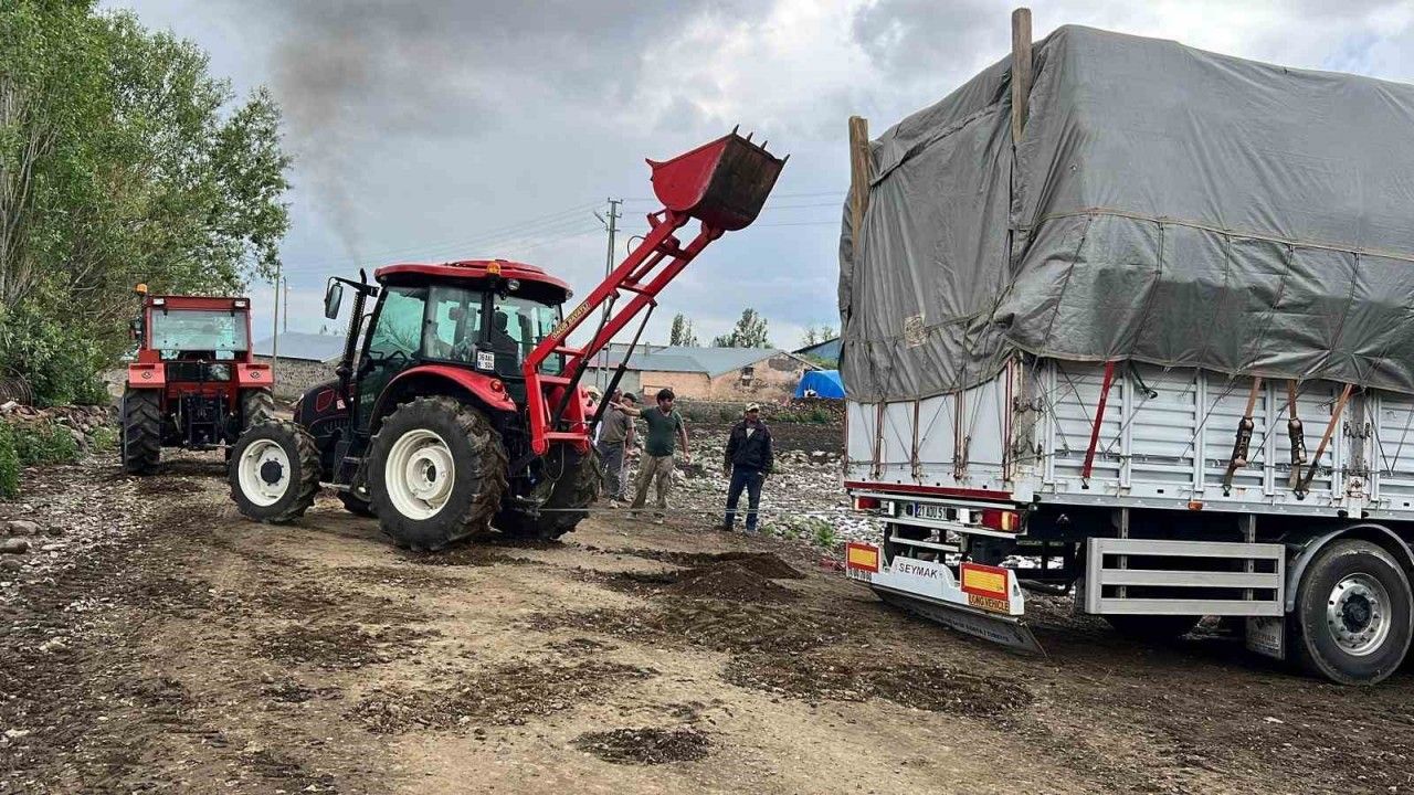 Kars’ın Arpaçay ilçesine bağlı Karakale köyüne saman götüren tır, köy girişinde çamura saplandı. Tırın çamura saplandığı gören köylüler seferber oldu. Traktörleriyle bölgeye gelen köylüler, önce çamurun üzerine traktörün kepçesiyle kum serdi. Daha sonra tırı çıkarmak için çalışma başlattı.
