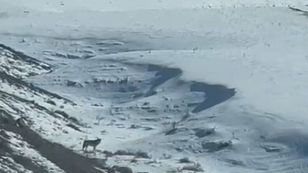 Kars’ta köye inen kurt, vatandaş tarafından görüntülendi