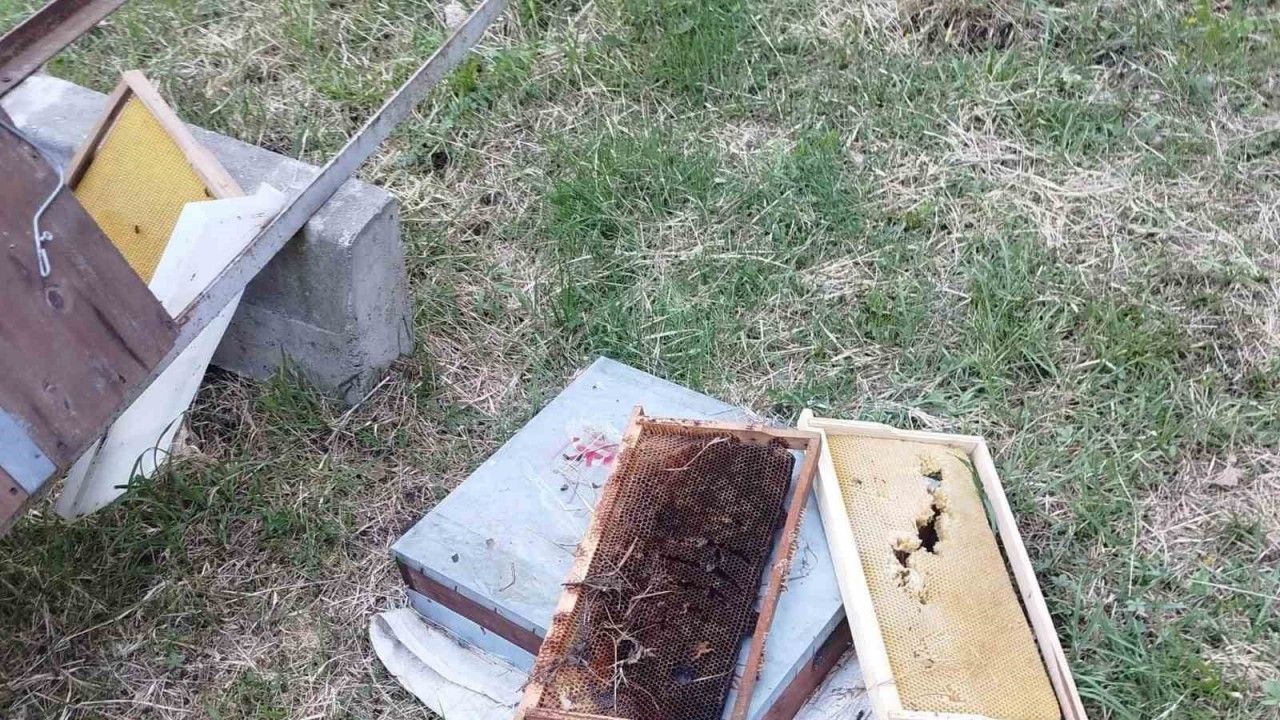 Edinilen bilgiye göre, Cide ilçesine bağlı Gebeş Mahallesi’nde ikamet eden Bahri Kısa, kontrol için gittiği bahçesindeki arı kovanlarının parçalandığını gördü. Ayılar tarafından parçalanılan 6 kovandaki arıların büyük bir kısmı da telef edildi.