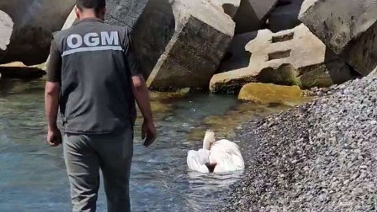 Kastamonu’da yaralı halde sahile vuran pelikan tedavi altına alındı.