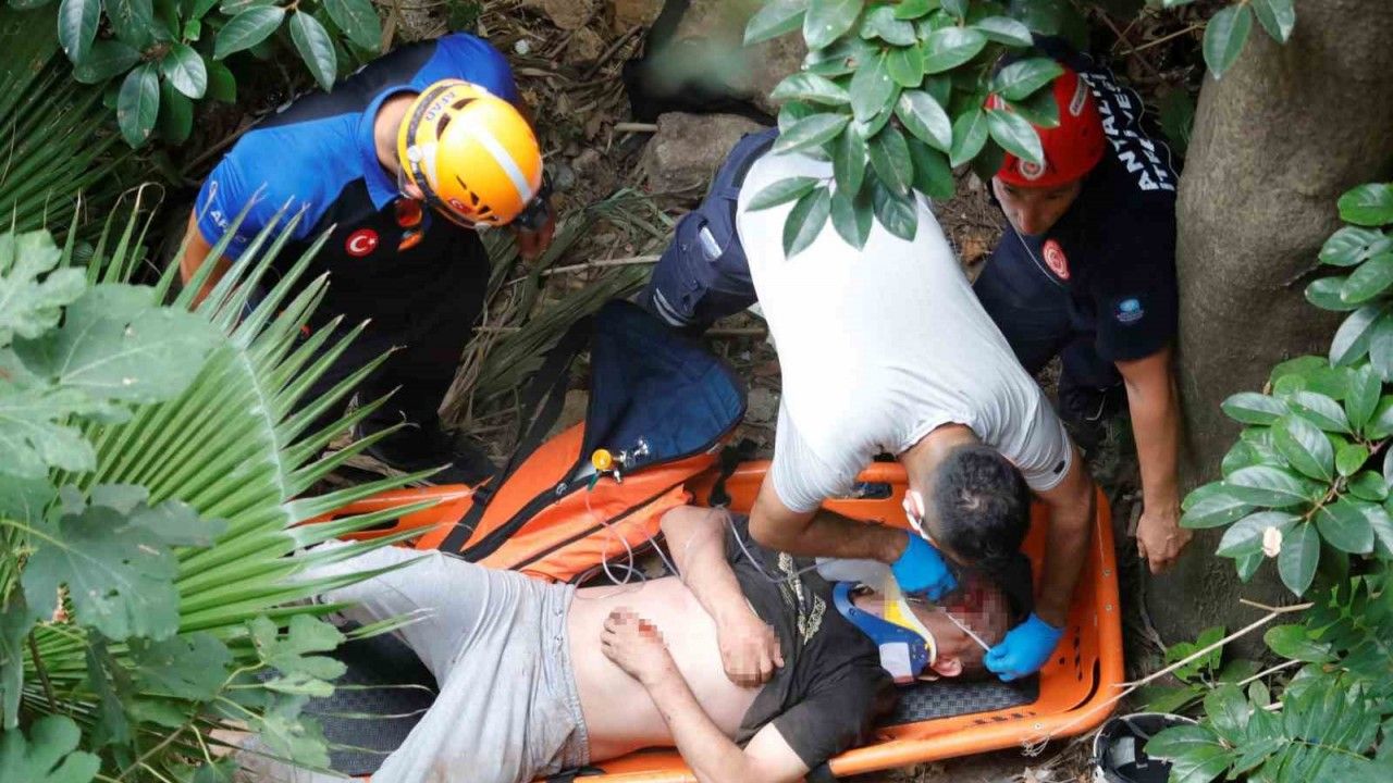 Verilen adrese gelen ekipler isminin Ömür H. Y. (27) olduğu öğrenilen genci kurtarmak için çalışma başlattı. Bu sırada bazı vatandaşlar ekiplerin kurtarma çalışmasını meraklı gözlerle takip etti. İlk olarak gencin yanına inen ekipler güvenli noktaya aldıktan sonra ilk müdahaleyi yaptı. İpli kurtarma düzeneği hazırlayan ekipler Ömür H. Y.’yi basket sedyeye koyarak bulunduğu yerden çıkardı. Yaklaşık 1 saatlik kurtarma çalışmasının ardından ambulansa alınan ve vücudunun farklı yerlerinde yaralar olduğu görülen Ömür H.Y., tedavi edilmek üzere Antalya Eğitim ve Araştırma hastanesine kaldırıldı.