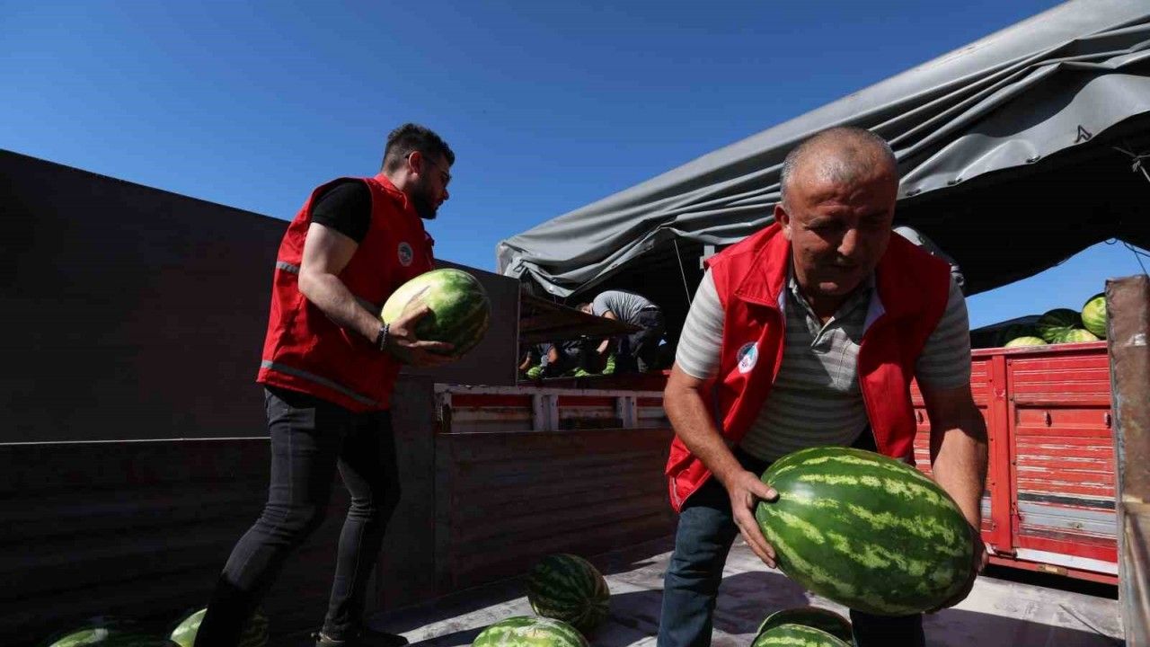 Kayseri Büyükşehir Belediyesi; yaz sıcaklarının etkisini bir nebze olsun hafifletmek ve sofralara serinlik katmak için büyük bir dayanışma örneğine daha imza attı. Melikgazi, Kocasinan ve Talas ilçelerindeki aş evleri ile sosyal destek kartı kullanan ihtiyaç sahibi vatandaşlara 1 tır dolusu 17 ton karpuz dağıtıldı.
