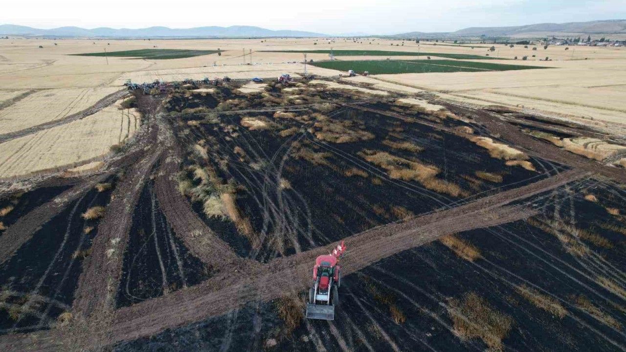 Kayseri’nin Tomarza ilçesinde çıkan yangında yaklaşık 100 dekar ekili arazi küle döndü.