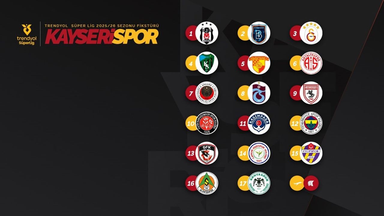 Süper Lig 2025-2026 sezonu fikstür çekimi gerçekleştirildi. Kayserispor Kulübü adına fikstür çekimine Başkan Nurettin Açıkalın katıldı. 18 takımın mücadele vereceği ve 34 hafta sürecek yeni sezonda boy gösterecek olan Kayserispor, ilk haftasını maç yapmadan BAY olarak geçecek. Sarı-kırmızılılar ligin 1. haftasında evinde Beşiktaş’ı konuk edecek. 2025-2026 sezonunun ilk yarısında Beşiktaş ve Galatasaray’ı sahasında konuk edecek olan Kayserispor, Başakşehir, Fenerbahçe, Trabzonspor ile deplasmanda karşılaşacak. Kayserispor 14. haftada Çaykur Rizespor ve 15. haftada Eyüpspor ile deplasmanda oynayacak. 8, 9,10,11 ve 12 Ağustos 2025 tarihlerinde oynanacak maçlarla başlayacak. 17 hafta sürecek Süper Lig 2025-2026 futbol sezonunun ilk yarısında Kayserispor’un oynayacağı maçlar ise şu şekilde: