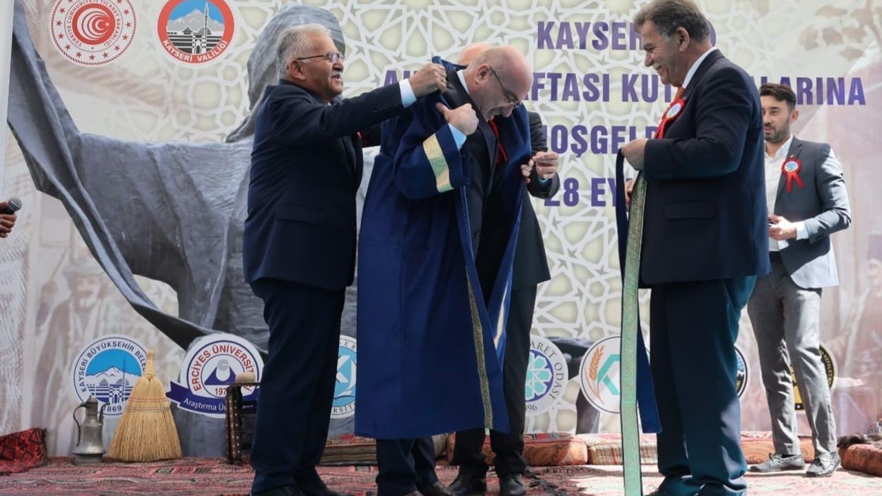 Açılış konuşmalarının ardından 2025 Yılı Ahilik Özel Ödülü verilen ve kaftan giydirilen KAYÜ Rektörü Prof. Dr. Kurtuluş Karamustafa, "Kayseri Üniversitesi, kurulduğu günden bugüne geçen 7 yıllık süreçte hem ortaya koyduğu bilimsel çalışmalarla hem de yetiştirdiği nitelikli mezunlarla; şehrimizin ve ülkemizin, mesleki ve teknik yükseköğretim alanında öncü ve örnek bir akademik eğitim kurumu olma yolunda kararlılıkla yürümeye devam etmektedir. Üniversiteler, bilgi üretimi, araştırma ve eğitim faaliyetleriyle topluma hizmet eden kurumlar olarak, hem evrensel bir bakış açısı ile hareket etme sorumluluğu taşır, hem de bulundukları toplumun kültürel, milli ve dini değerlerine bağlıdır. Milli değerlere bağlılık, öğrencilerin ve akademisyenlerin toplumsal kimlik bilinci geliştirmesine, kültürel mirasın korunmasına katkı sağlar. Bu anlamda, ahilik kültürünün bugünün dünyası için çok kıymetli bir ilham kaynağı olduğunu dile getirmek istiyorum" şeklinde konuştu.