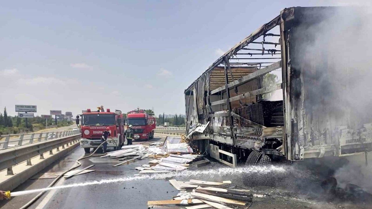 Antalya’da mobilya malzemesi yüklü tır seyir halindeyken yandı. İtfaiye ekiplerinin zamanında müdahalesi ile yangın söndürülürken büyük çapta maddi hasar meydana geldi.
