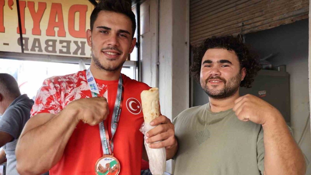 Olimpiyat Güreş Şampiyonu İsmet Atlı’nın memleketi olan Kozan’da gençler atalarının izinde dünyaya memleketlerini duyurmaya devam ediyor. İlçede kasap ve kebap dükkanında çalışan 23 yaşındaki Denizcan Uçar, uluslararası arenada aldığı dereceyle ilçesinde coşkuyla karşılandı. Dünya şampiyonasından döner dönmez iş başı yapan Denizcan Uçar, kasapta etleri doğradı ardından da ocak başına geçerek antrenörü ve arkadaşlarıyla birlikte Adana kebabı hazırladı.