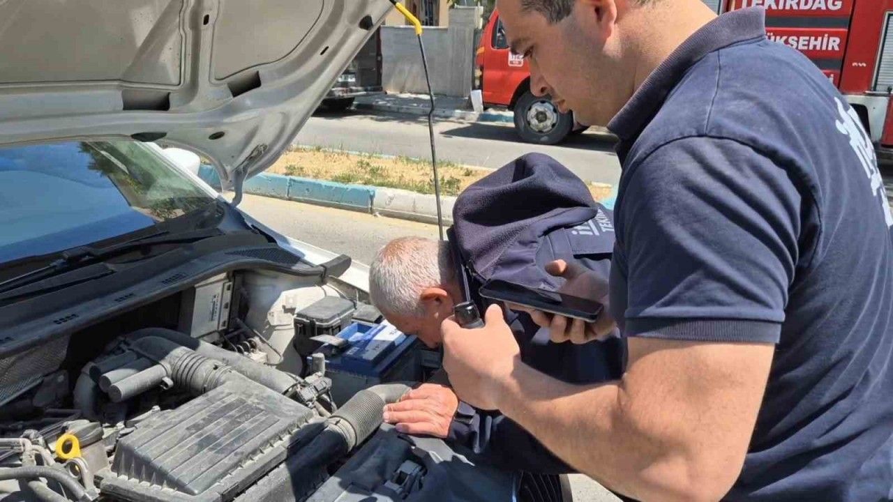 Tekirdağ’da bir araçta yaklaşık 2 saat süren kurtarma operasyonunda minik kedi, telefondaki kedi sesi yardımı ile yeri tespit edilerek sağ salim çıkarıldı.