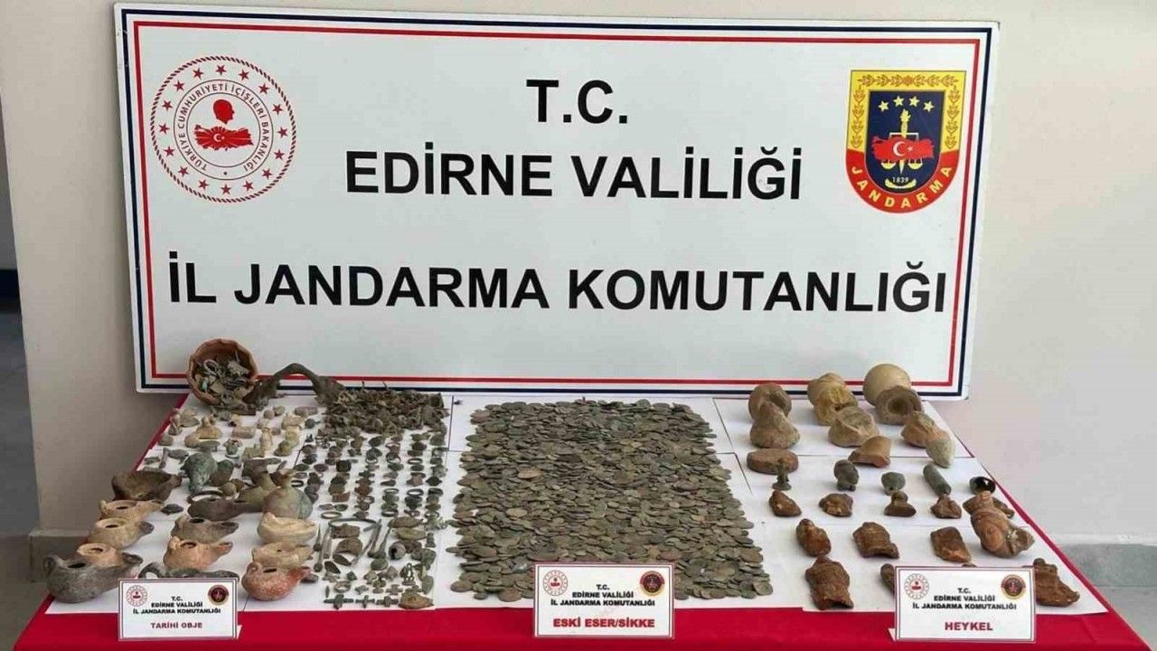 Alınan bilgiye göre, Edirne İl Jandarma Komutanlığı Kaçakçılık ve Organize Suçlarla Mücadele Şube Müdürlüğü ekipleri, H.G.G.’nin (54) Keşan’daki evinde tarihi eser bulunduğunu belirledi. Bunun üzerine gerçekleştirilen operasyonda H.G.G’nin evinde arama yapıldı. Aramada; 87 yüzük, 29 pişmiş topraktan yapılmış figür, 7 ok ucu, 10 kandil, 6 hac, 8 madeni malzeme, 2 bin 525 sikke, 1585 taş obje, 301 metal obje, 3 minyatür heykel, 3 mühür olmak üzere toplamda 4 bin 564 parça Bizans ve Roma dönemlerine ait tarihi eser ele geçirildi. Gözaltına alınan H.G.G. hakkında adli işlem başlatıldı.
