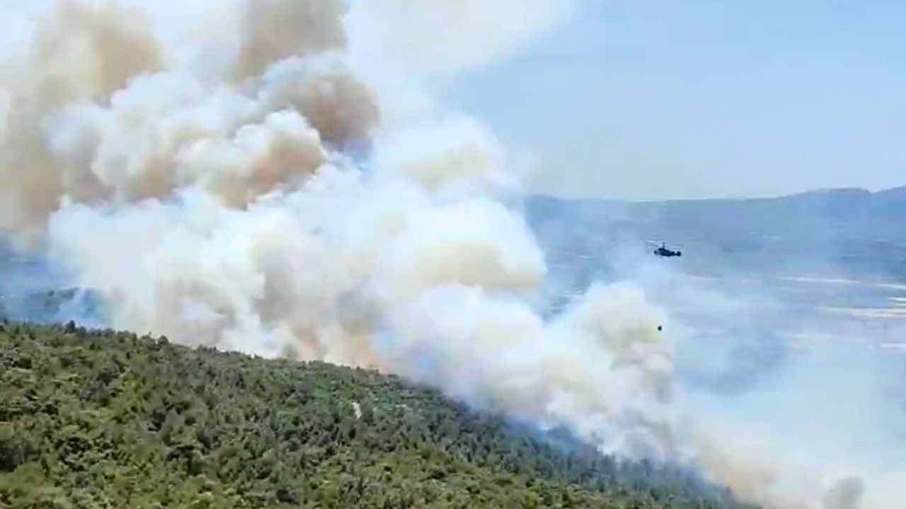 Manisa’nın Kırkağaç ilçesinde dün başlayan ve bu sabah kontrol altına alınan yangın farklı noktadan yeniden alevlenirken, yangına havadan ve karadan müdahale başladı.