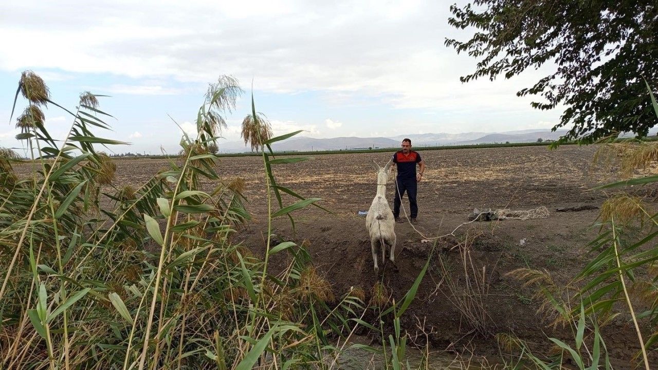 Kırıkhan ilçesi Karadurmuşlu Mahallesi’nde sulama kanalına düşen eşeği fark eden vatandaşlar, hayvanı kendi imkanlarıyla kurtaramayınca durumu itfaiye ekiplerine bildirdi. İhbar üzerine bölgeye gelen Hatay Büyükşehir Belediyesi itfaiye ekipleri, eşeği titiz çalışmayla sağlıklı şekilde kurtardı. Kurtarılan eşek, sahibine teslim edildi.