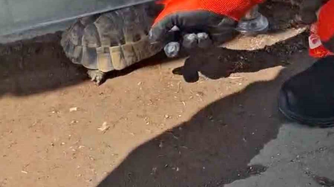 İtfaiye personeli, dikkatli müdahaleyle kaplumbağayı sıkıştığı yerden zarar vermeden çıkardı. Kurtarılan kaplumbağa, doğal yaşam alanına bırakılmak üzere koruma altına alındı. O anlar cep telefonu kamerasıyla görüntülendi.