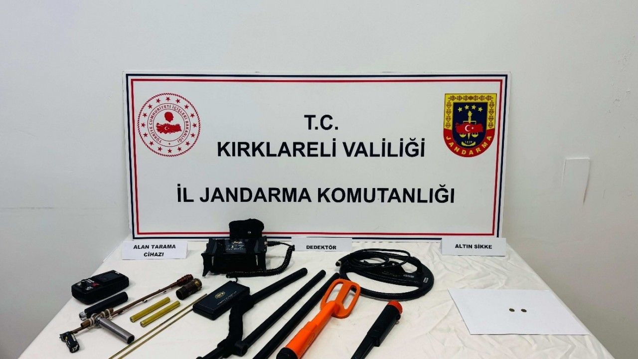 Alınan bilgiye göre, Vize ilçesinde sit alanında iş makineleri ve patlayıcı maddeler kullanılarak kaçak kazı yapıldığı bilgisine ulaşan jandarma ekipleri harekete geçti. Ekipler, Vize Cumhuriyet Başsavcılığı koordinasyonunda Kırklareli, İstanbul ve Tekirdağ’da operasyon düzenledi. Operasyonda 14 şüpheli yakalanırken, şüphelilerin evlerinde yapılan aramalarda 2 tabanca, 330 tabanca mühimmatı, 2 altın sikke, 8 dedektör, 125 sayfa define haritası, 13 kilogram patlayıcı madde, 100 metre elektrik kablosu, 4 el yapımı fünye, 2 hilti, 6 alan tarama cihazı, 3 karot makinesi, 3 kamera, 2 telsiz, gaz maskesi ile kazı malzemeleri ele geçirildi.