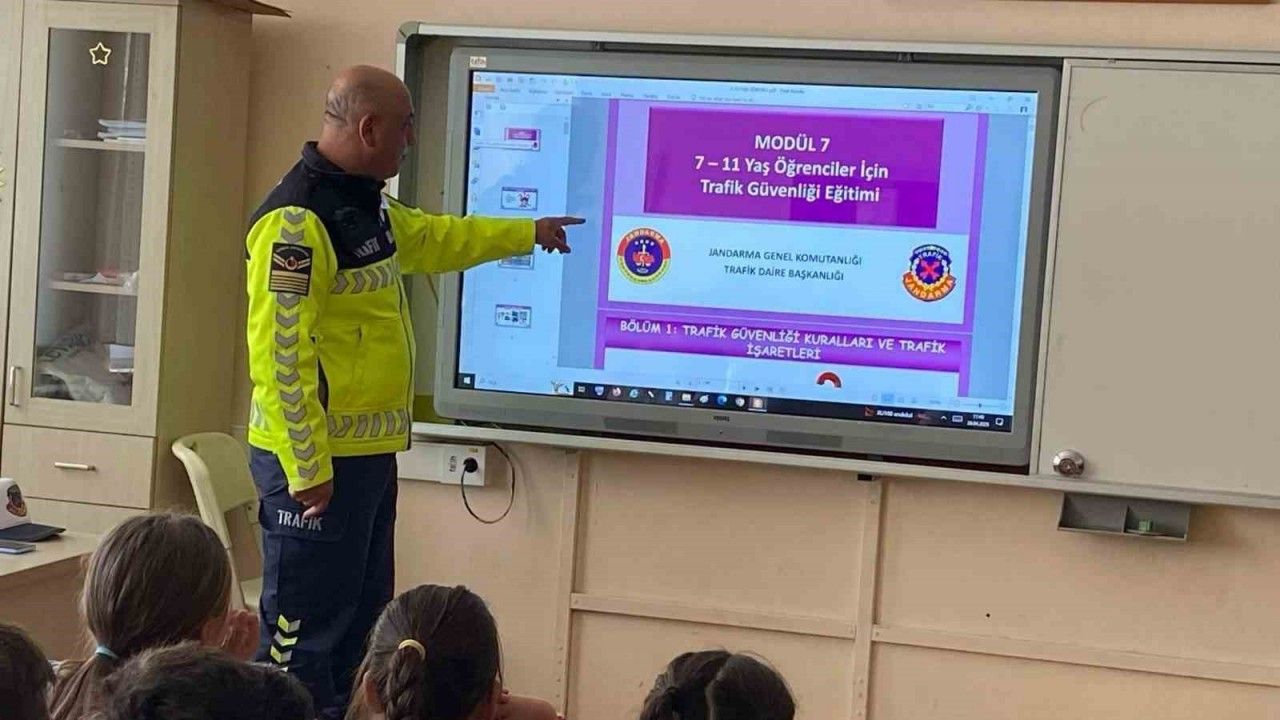 Kırklareli İl Jandarma Komutanlığı ekipleri sorumlu oldukları bölgelerde öğrencilere trafik kuralları hakkında bilgilendirdi.