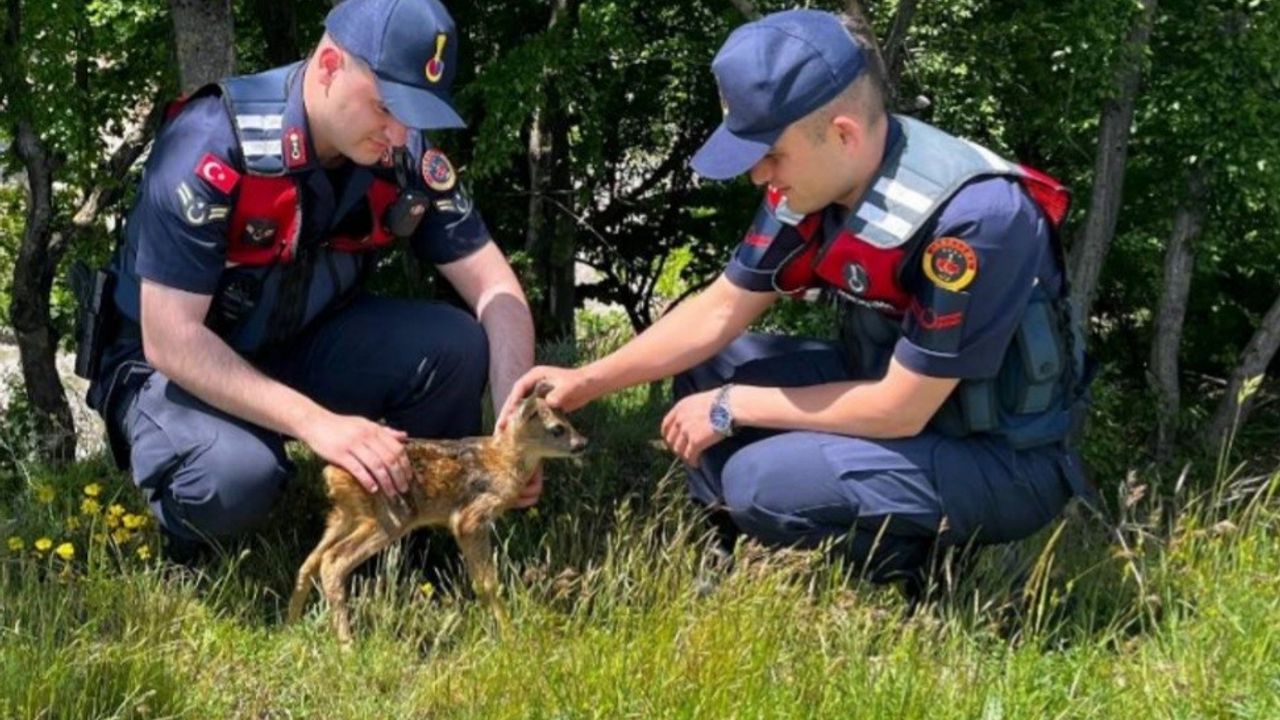 Kırklareli’nde jandarma ekiplerince yol kenarında bulunan karaca yavrusu koruma altına alındı.