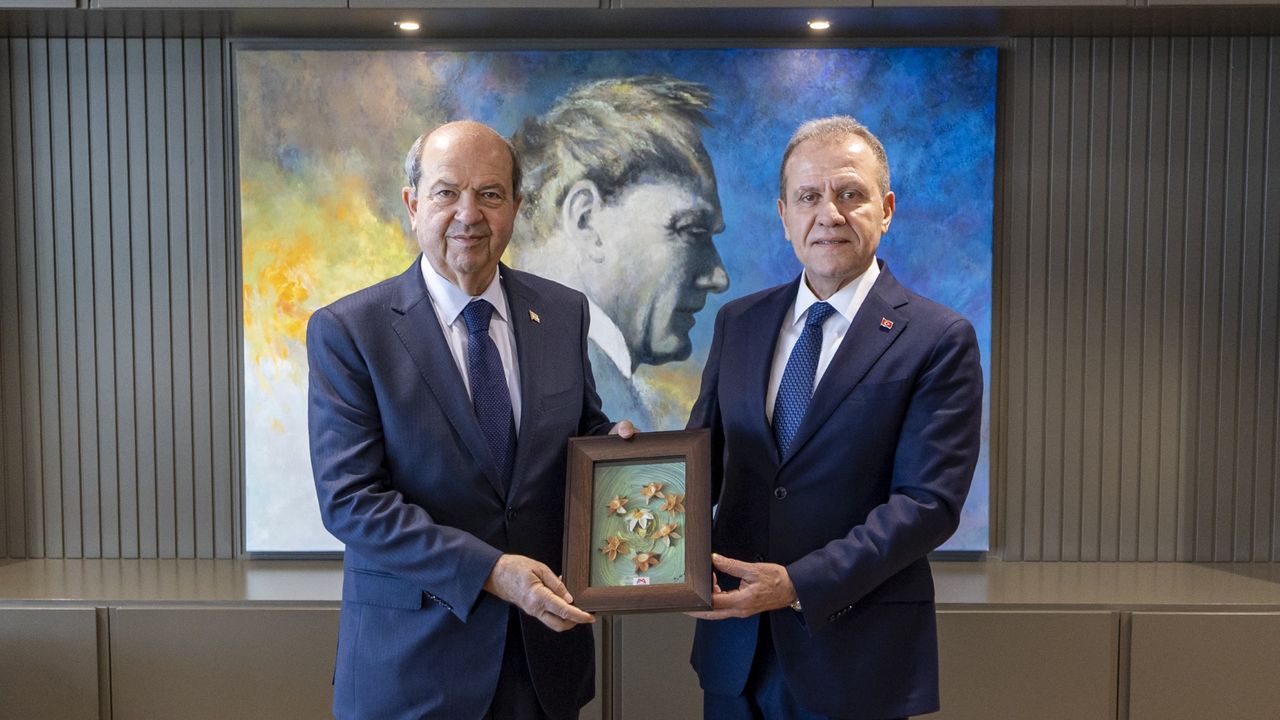 Bir dizi ziyaret kapsamında Mersin’e gelen Kuzey Kıbrıs Türk Cumhuriyeti’nin 5. Cumhurbaşkanı Ersin Tatar ve beraberindeki heyet, Türkiye Belediyeler Birliği Başkan Vekili ve Mersin Büyükşehir Belediye Başkanı Vahap Seçer’i ziyaret etti.