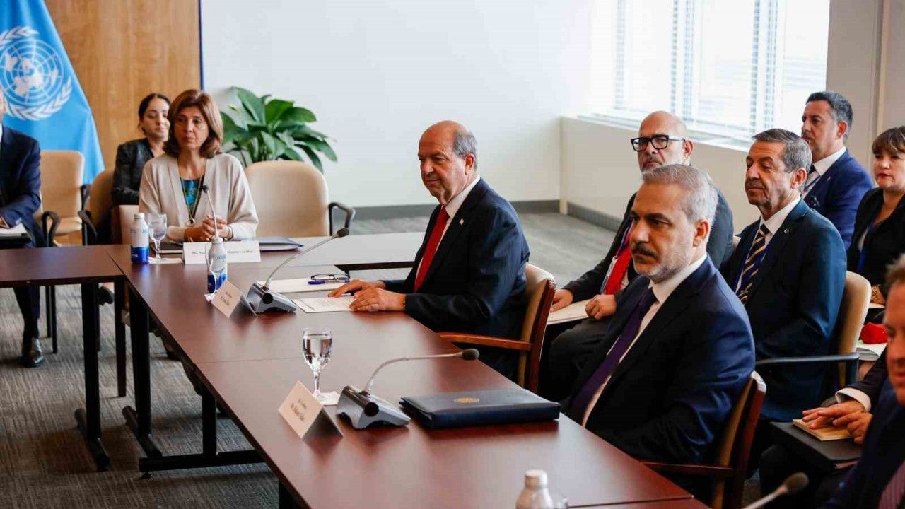 KKTC Cumhurbaşkanı Ersin Tatar, ABD’nin New York kentinde temaslarına devam ediyor. Cumhurbaşkanı Tatar, Birleşmiş Milletler (BM) Genel Merkezi’nde düzenlenen BM ile Kıbrıs Konulu Genişletilmiş Formatlı Gayrıresmi Toplantısı’na katıldı. Toplantıda BM Genel Sekreteri Antonio Guterres’in yanı sıra, Dışişleri Bakanı Hakan Fidan, GKRY Lideri Nikos Hristodulidis, Yunanistan Dışişleri Bakanı Yorgo Gerapetritis ve İngiltere Dışişleri Bakanlığında Avrupa ve Kuzey Amerika’dan Sorumlu Devlet Bakanı Stephen Doughty de yer alıyor.