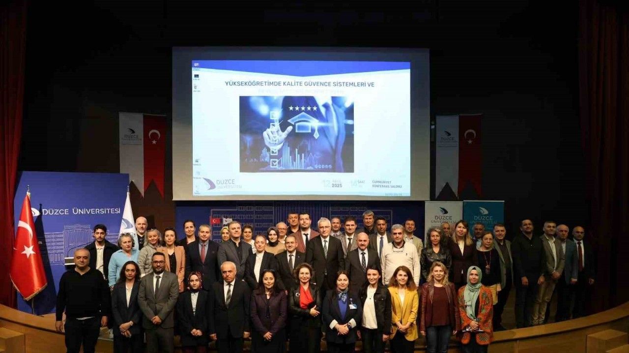 Yükseköğretim Kalite Kurulu Başkanı Prof. Dr. Ümit Kocabıçak, Düzce Üniversitesi tarafından düzenlenen ‘Yükseköğretimde Kalite Güvence Sistemleri ve Akreditasyonlarının Önemi’ başlıklı konferansta Düzce Üniversitesi mensuplarıyla bir araya geldi. Cumhuriyet Konferans Salonu’nda gerçekleştirilen programın açılış konuşmasını gerçekleştiren Rektör Nedim Sözbir, günümüzün rekabetçi yükseköğretim dünyasında kalite güvencesi ve akreditasyon süreçlerinin, kurumsal gelişim başta olmak üzere birçok faydası olduğunu dile getirdi. Kalite kültürünü kurumsal hale getirmek istediklerini belirten Sözbir, bu sürece katkılarından dolayı akademik ve idari birim yöneticilerine teşekkür etti. Kalite süreçlerinde büyük hamle gerçekleştiren Düzce Üniversitesi’nin, 2 yıllık kurumsal akreditasyon belgesi almaya hak kazandığına dikkat çeken Sözbir, desteklerinden dolayı Yükseköğretim Kalite Kurulu Başkanı Prof. Dr. Ümit Kocabıçak’a şükranlarını sundu.