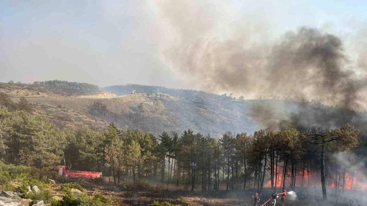 Kocaeli Büyükşehir Belediyesi itfaiye ekipleri de yangının başlangıcından bu yana sahadaki söndürme ve soğutma çalışmalarında aktif rol üstleniyor.