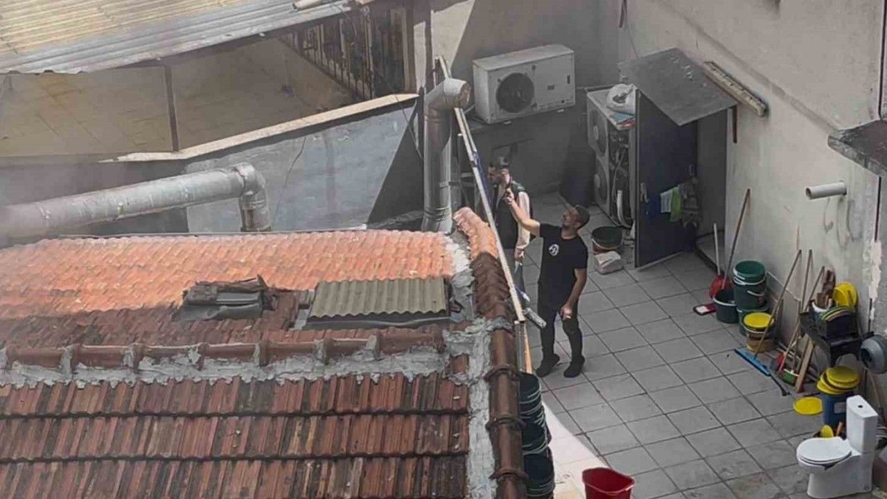 İtfaiye ekiplerinin yangına müdahale için geldiği anlarda, iki binanın bitişiğindeki binanın çatı katına çıkan iki kişi ise alevlere ve dumana aldırış etmeden olup biteni cep telefonları ile kaydetti. Yangının kendi binalarına sıçrama riskini umursamayan vatandaşlar, hiçbir şey yokmuş gibi dumanları seyretti.