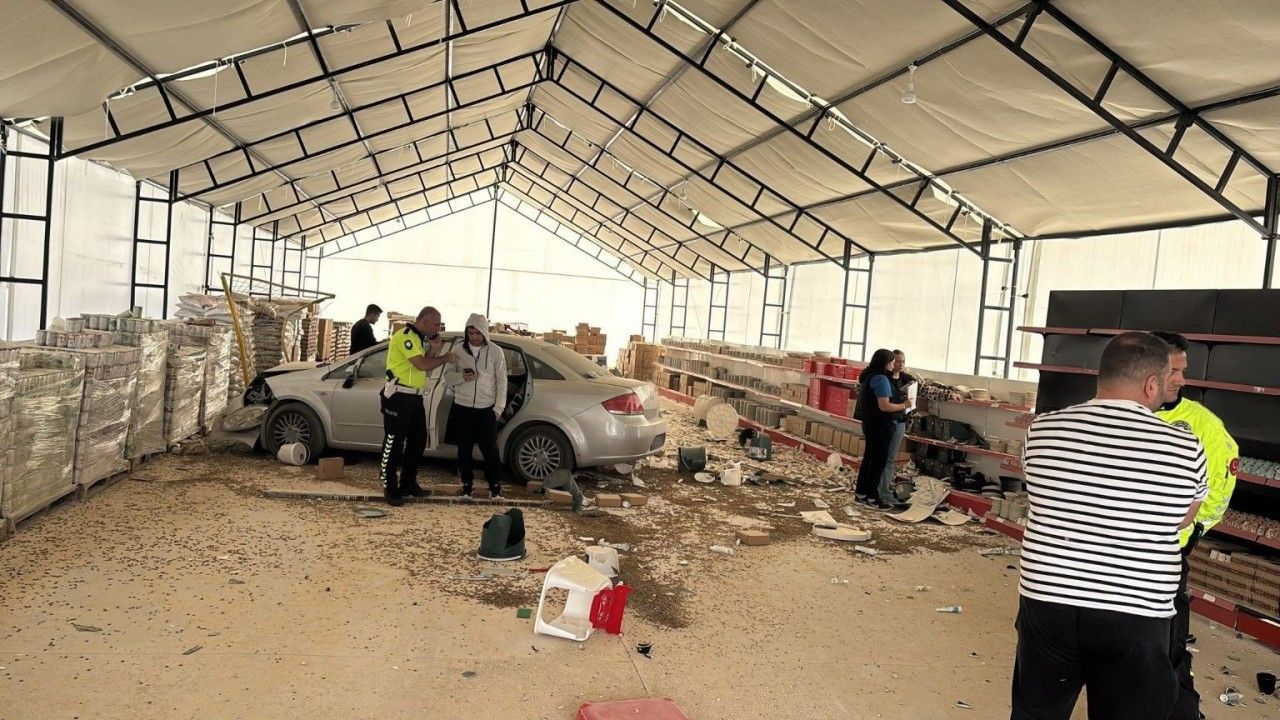 Bilecik’te kontrolden çıkan otomobil bir iş yerine girerken olayda faciadan dönüldü.