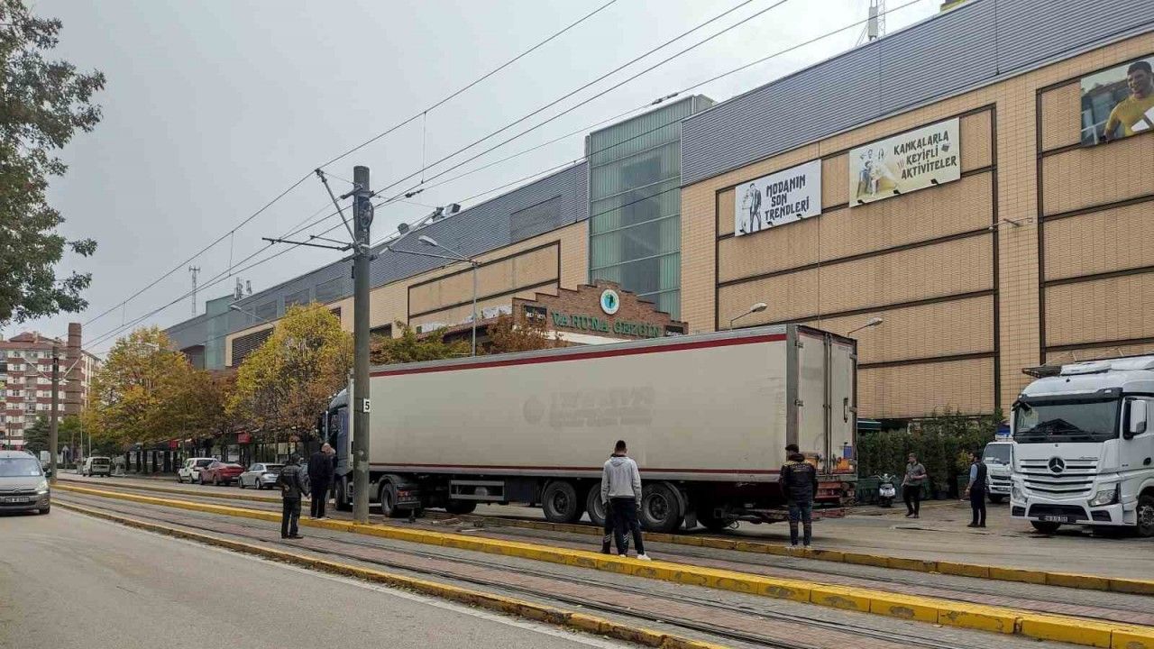 Olay, saat 09.00 sıralarında Fabrikacılar Caddesi üzerinde meydana geldi. Edinilen bilgilere göre; 06 KA 3652 plakalı tır, sürücüsünün direksiyon hakimiyetini kaybetmesi sonucunda tramvay yoluna girdi. Rayların kenarındaki taşlara takılan tır sebebiyle OTOGAR-SSK / OGÜ-SSK hatlarında tramvay seferleri yapılamazken, diğer karayolu araçları da ilerleyemedi. İhbar üzerine olay yerine polis ve ESTRAM ekipleri sevk edildi. Tırın bulunduğu yerden çekilmesi için çalışma başlatıldı. Ekiplerin gerekli müdahaleyi yapmasının ardından seferler normale döndü.