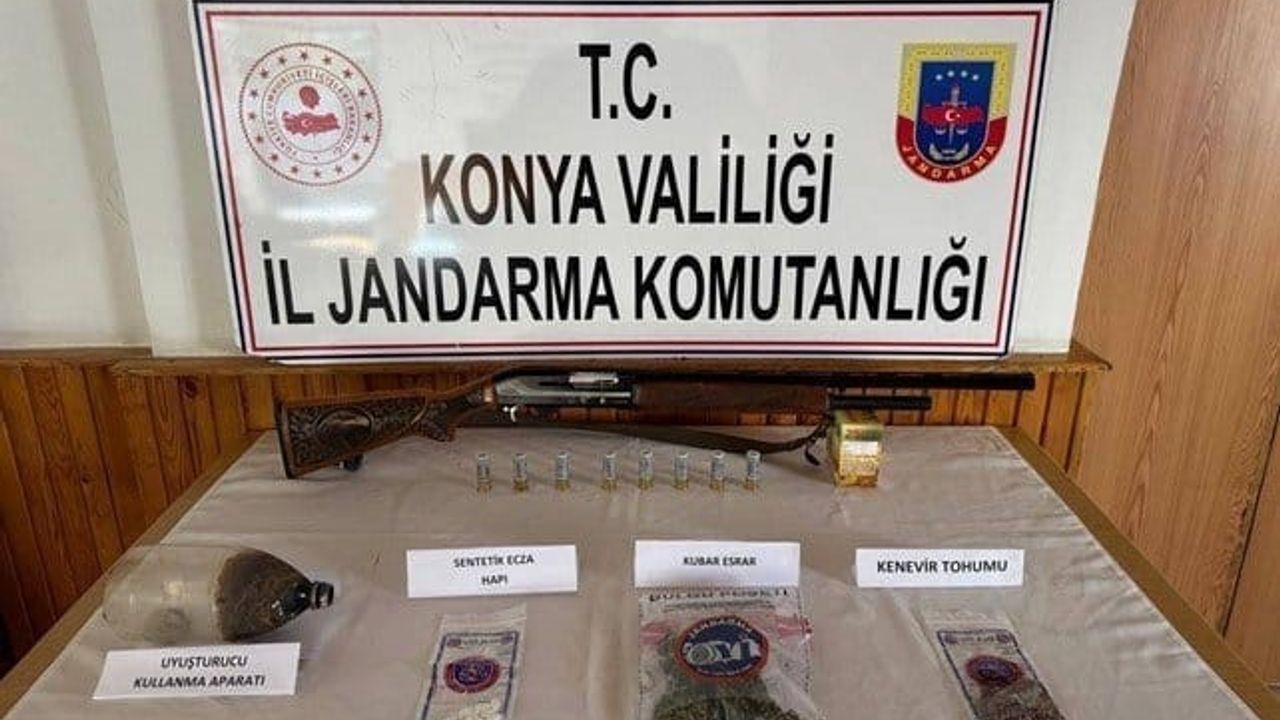 Edinilen bilgiye göre, 7-8-9 Ekim 2025 tarihlerinden Ereğli ve Çumra’da Jandarma KOM Şube Müdürlüğü, NSM Şube Müdürlüğü ve Ereğli İlçe Jandarma Komutanlığı ve Çumra İlçe Jandarma Komutanlığı ekiplerince yapılan istihbari çalışmalar neticesinde; 4 şahsın aracında ve ikametinde arama yapıldı. Operasyon sonucunda; 510 gram kubar esrar, 100 gram bonzai maddesi, 85 gram kenevir tohumu, 1 adet ruhsatsız av tüfeği, 8 adet av fişeği, 322 adet sentetik hap, 1 adet uyuşturucu kullanma aparatı, 11 adet tabanca fişeği, 4 bin 290 TL nakit para ele geçirildi. Operasyonlarda Ereğli’de gözaltına alınan 3 şahıstan 2’si serbest bırakılırken, 1 şüpheli çıkarıldığı mahkemece tutuklanarak cezaevine gönderildi. Çumra ilçesinde gözaltına alınan şahıs ise işlemlerinin ardından Cumhuriyet Başsavcılığı’na sevk edildi.