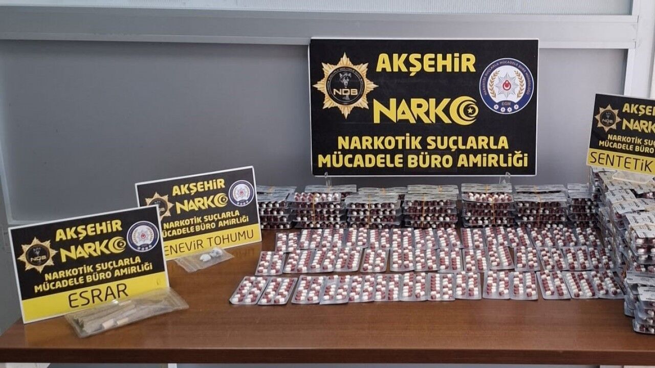 Konya Narkotik Suçlarla Mücadele Şube Müdürlüğü ekipleri, uyuşturucu sevkiyatı yapabileceğinden şüphelenilen bir kişinin tespit edilmesi üzerine Akşehir İlçe Emniyet Müdürlüğü ile koordineli bir operasyon düzenledi. Ekipler, şüphelinin yolcu olarak bulunduğu şehirlerarası otobüsü durdurarak arama yaptı. Yapılan üst ve eşya aramasında, şüpheli İ.Ş.’ye ait valizde 5 bin 300 adet uyuşturucu hap, 28,92 gram esrar ve 2,16 gram kenevir tohumu ele geçirildi. Uyuşturucu maddelere el konulurken, şüpheli gözaltına alındı.