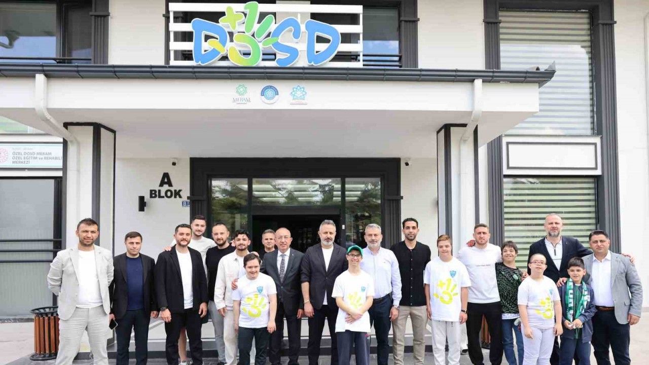 Konyaspor Başkanı Ömer Korkmaz, kulüp yöneticileri ve Konyasporlu futbolcular Melih İbrahimoğlu, Deniz Ertaş, Uğurcan Yazgılı ve Melih Bostan, Meram Belediyesi öncülüğünde hayata geçirilen Down Sendromlu Bireyler Yaşam Destek Merkezi DOSD Meram’ı ziyaret ederek down sendromlu özel çocuklara unutulmaz bir gün yaşattı. Meram Belediye Başkanı Mustafa Kavuş ve DOSD Meram Dernek Başkanı Mehmet Munlafalıoğlu da ziyaretlerinde Konyasporlu yönetici ve futbolculara eşlik etti. Başkan Kavuş ve Munlafalıoğlu, misafirlere merkezi gezdirerek, çalışmalar hakkında bilgi verdi.