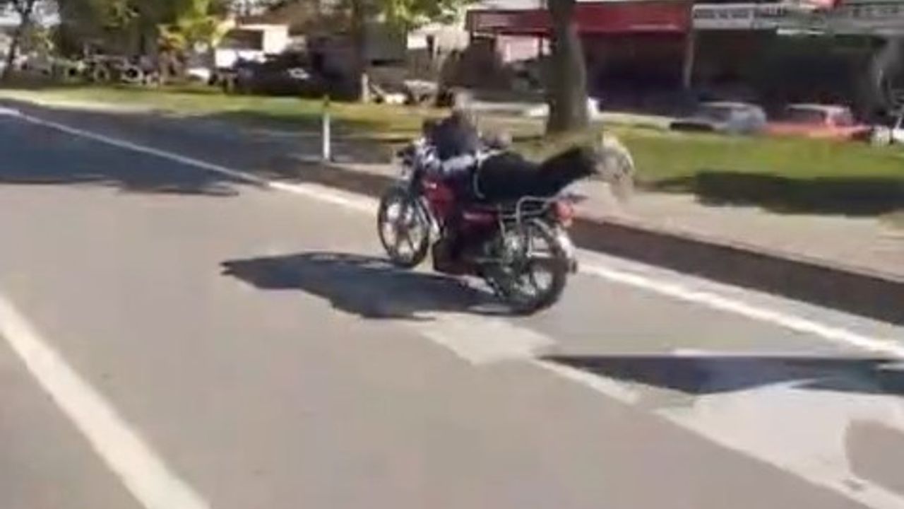 Erbaa ilçesinde D-100 Karayolu üzerinde plakasız motosikleti kasksız şekilde kullanan sürücü, yaptığı akrobatik hareketlerle hem kendi canını hem de diğer sürücülerin güvenliğini hiçe saydı. Ellerini gidondan tamamen çekerek motosikletin üzerine yatan sürücü, çevredeki vatandaşlar tarafından cep telefonu kamerasıyla görüntülendi.