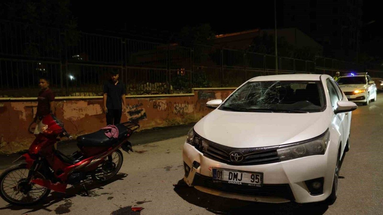 Kaza, Karacaoğlan Mahallesi’nde meydana geldi. İddiaya göre, ağabeyine ait 01 AER 685 plakalı motosiklet ile gezintiye çıkan C.K. (15) ve arkadaşı A.E. (15), karşı yönden gelen M.C. yönetimindeki 01 DMJ 95 plakalı otomobil ile çarpıştı. Çarpışmanın etkisiyle sürücü C.K. otomobilin üzerine fırlarken, yolcu konumundaki A.E. ise yere düşerek yaralandı. İhbar üzerine olay yerine sevk edilen sağlık ekipleri, yaralıları Kozan Devlet Hastanesi’ne kaldırdı. Yaralıların sağlık durumlarının iyi olduğu öğrenildi. Kazada otomobilin ön camı patladı ve maddi hasar meydana geldi. Trafik ekipleri olayla ilgili inceleme başlattı.
