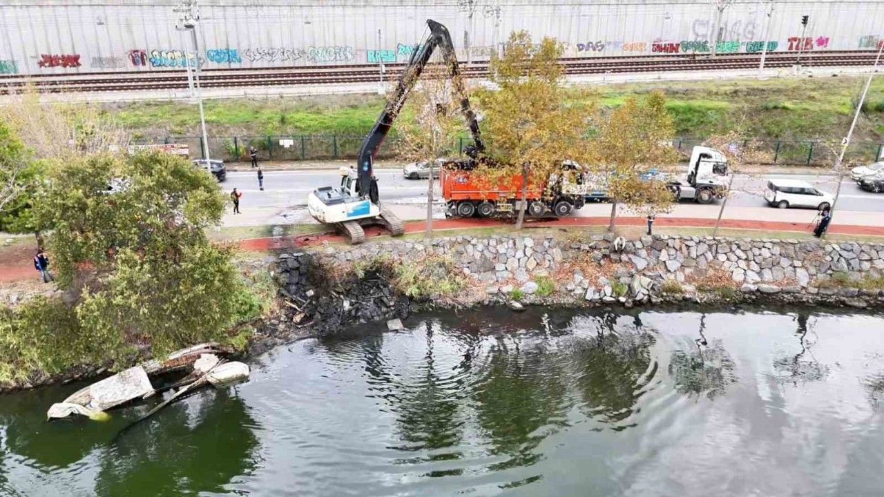 Küçükçekmece Belediyesi ekipleri, tekne mezarlığına dönen Menekşe Deresi’ni temizleme çalışmasına başladı. Çalışmaların yapıldığı alan havadan görüntülendi.