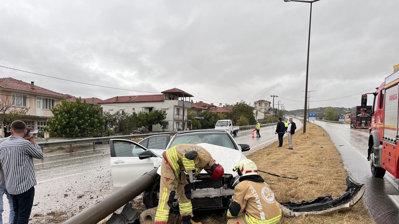 Manisa’nın Kula ilçesinde yağışlı hava nedeniyle kayganlaşan yolda direksiyon hakimiyetini kaybeden otomobil, orta refüje çıkarak aydınlatma direğine çarptı. Kazada şans eseri yaralanan olmadı.