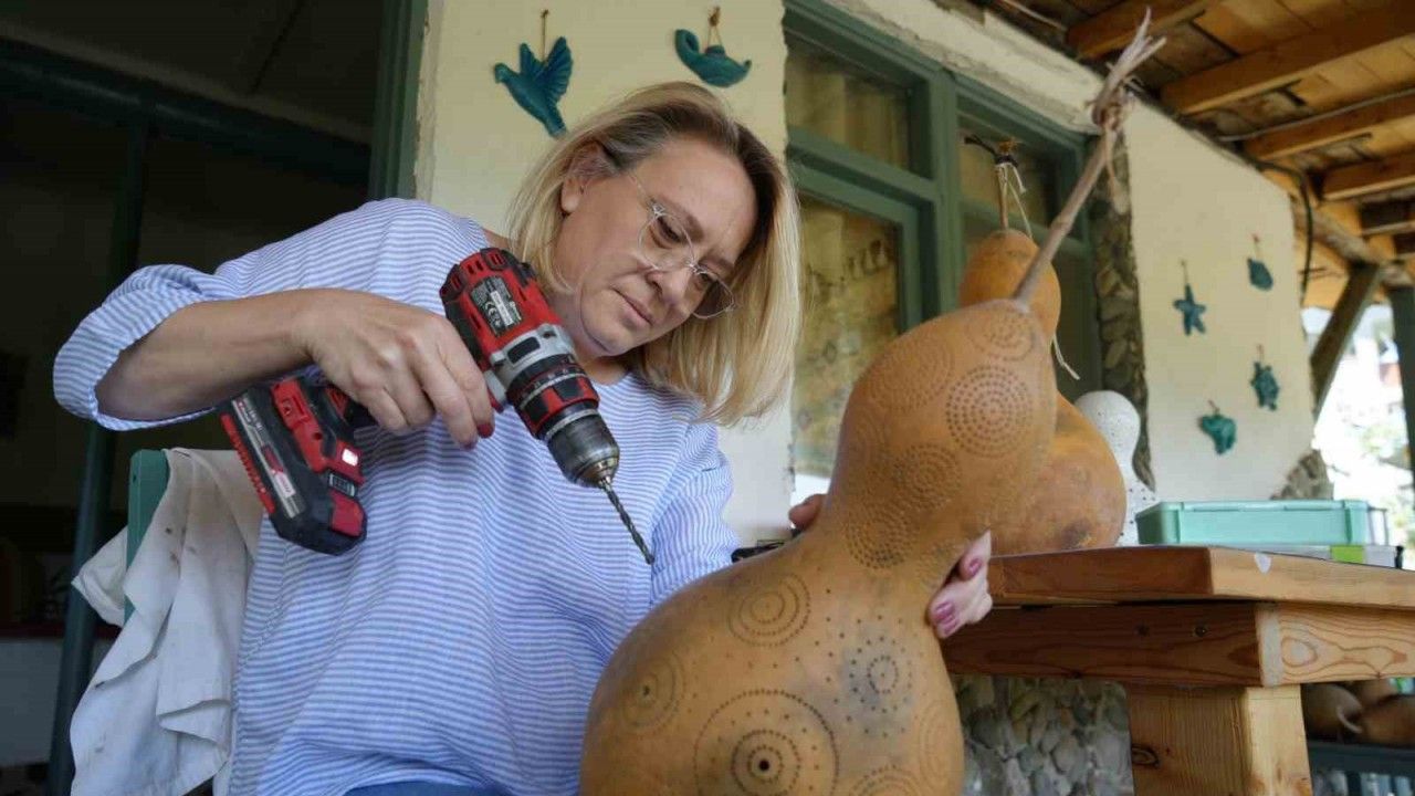 Kocaeli’de iş stresinden uzaklaşmak isteyen Asuman Aldemir, Bodrum’da gördüğü ışıklı su kabaklarından ilham alarak başladığı hobisini eski bir ahırı dönüştürdüğü atölyede sürdürüyor. Aldemir, el emeğiyle yaptığı ürünleri ise sadece sevdiklerine hediye ediyor.