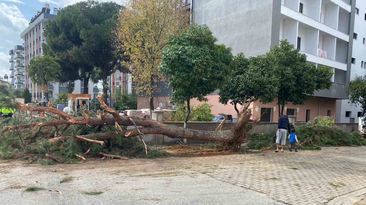 Aydın’ın Efeler ilçesinde kaldırım kenarında bulunan ve zamanla kuruyan çam ağacı bir anda yola devrildi. Büyük bir gürültü ile devrilen ağaç korkuya sebep olurken, şans eseri olayda yaralanan olmadı.