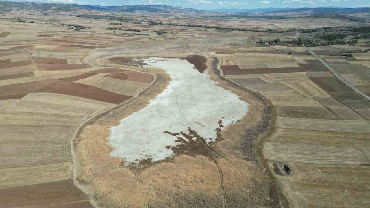 Sulusaray ilçe merkezine yaklaşık 15 kilometre uzaklıktaki Uylubağı köyü eteklerinde bulunan gölet, bu yıl yaşanan kuraklık nedeniyle tamamen kurudu. Bir zamanlar onlarca farklı kuş türüne ev sahipliği yapan göletin yerinde beyaz bir tabaka ve derin çatlaklarla kaplı kuru bir zemin kaldı.