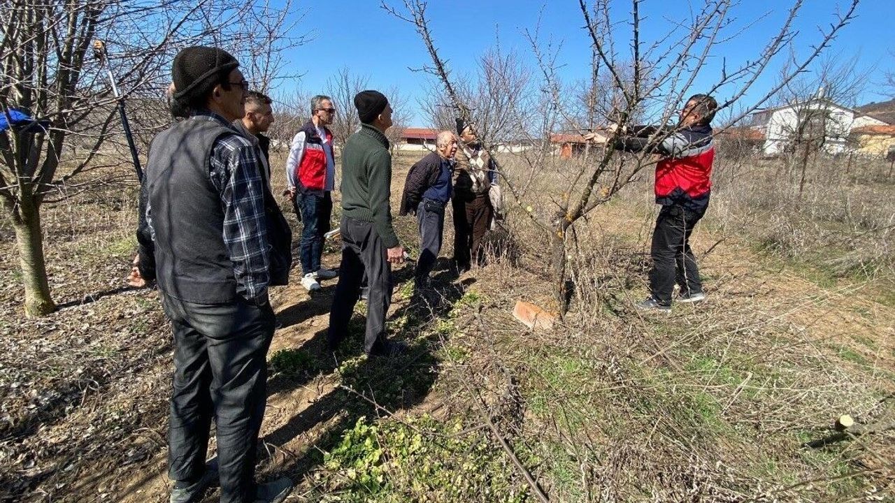 Kütahya ili Tavşanlı İlçe Tarım Müdürlüğü teknik personeli, Şenlik köyündeki çiftçilere yönelik uygulamalı meyve ağacı budama eğitimi düzenledi