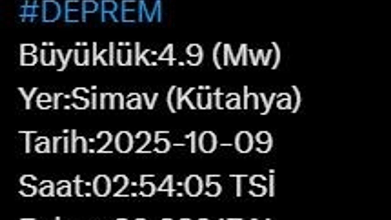 AFAD’ın paylaştığı bilgilere göre, Kütahya’nın Simav ilçesinde saat 02.54’te 4.9 büyüklüğünde deprem meydana geldi. Merkez üssü Simav ilçesi olan depremin derinliği 12.1 kilometre olarak ölçüldü.